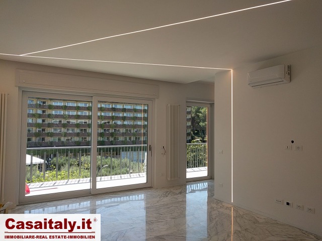 Balduina Hilton, via Cadlolo, splendido appartamento finemente ristrutturato con materiali pregiati, in complesso con parco privato e servizio di portineria, composto da soggiorno con cucina e balconata, una stanza da letto con bagno interno con doccia doppia, secondo bagno con vasca/doccia.