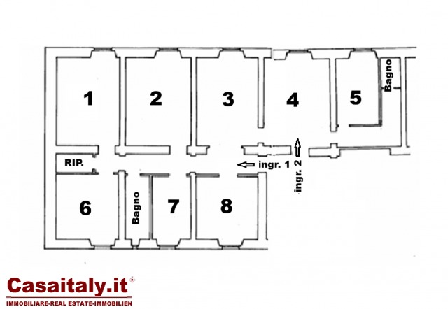 Re di Roma, immobile uso ufficio di ampia metratura, accatastato C3, composto da doppio ingresso, 8 stanze, 2 bagni, ripostiglio. L'immobile è posto al primo piano alto di un palazzo signorile con affacci luminosi ed è provvisto di riscaldamento autonomo ad aria calda/fredda.