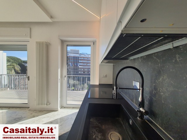 Balduina, Hilton, via Cadlolo, splendid apartment, completely restored with finest materials in compound with porter service and private park consisting of living room with kitchen and balcony, bedroom ensuite bathroom with double shower, second bathroom with bathtub/shower. The apartment is equipped with A/C, autonomous heating, led light system and electric shutters.