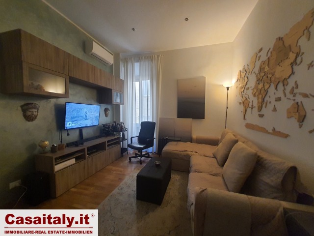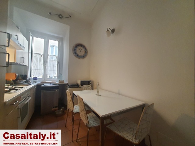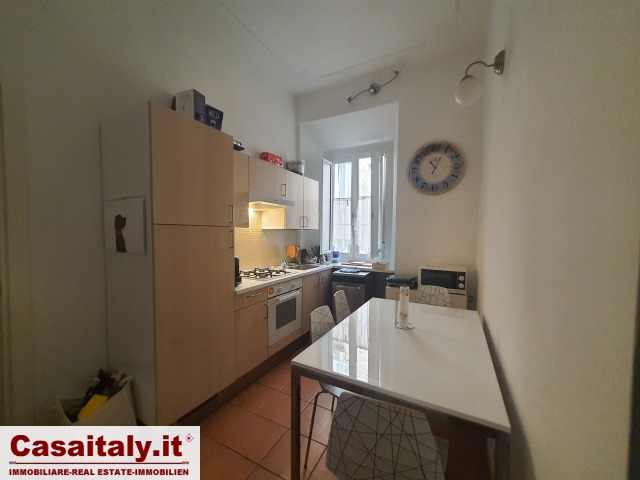 Via Sardegna, vicinity via Veneto, in period building with porter service, bright apartment on the second floor with lift, restored with new windows and furnished, consisting of entrance, living room, bedroom, completely equipped live-in kitchen with dishwasher, bathroom with window with shower and washing machine. Air conditioning hot /cold.